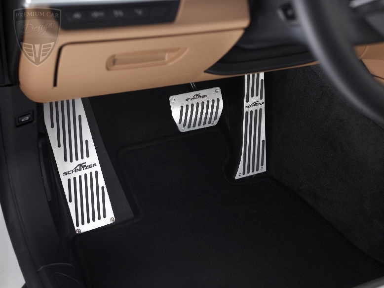 A belső tér átváltoztatásához rendelkezésre áll a velúr szőnyeg szett, valamint a már megszokott AC Schnitzer alumínium pedál és lábtartó szett.