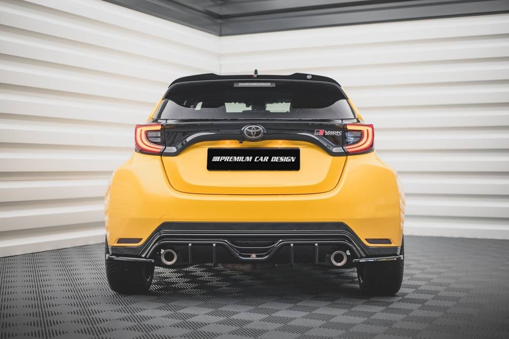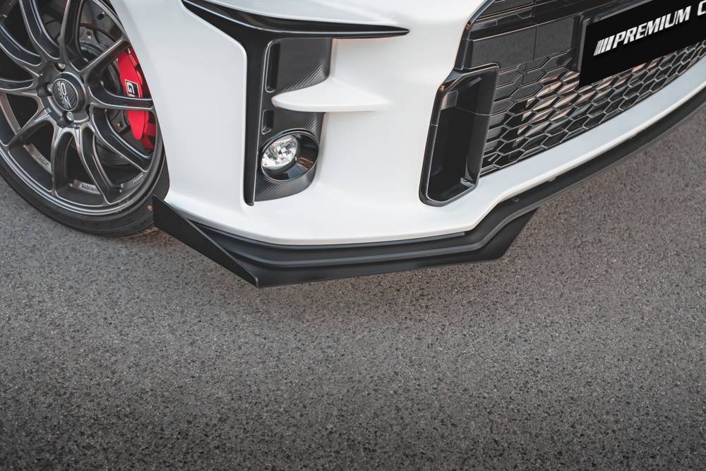 A Toyota Yaris GR modell erőtől duzzadó, sportos megjelenést kap külső tuning elemeink használatával. Ezek nemcsak látványban, hanem funkcionálisan is jelentősen javítják az autó jellemzőit, ugyanis jelentősen megnő a légellenállása, mely miatt javul az autó kezelhetősége és úttartása.