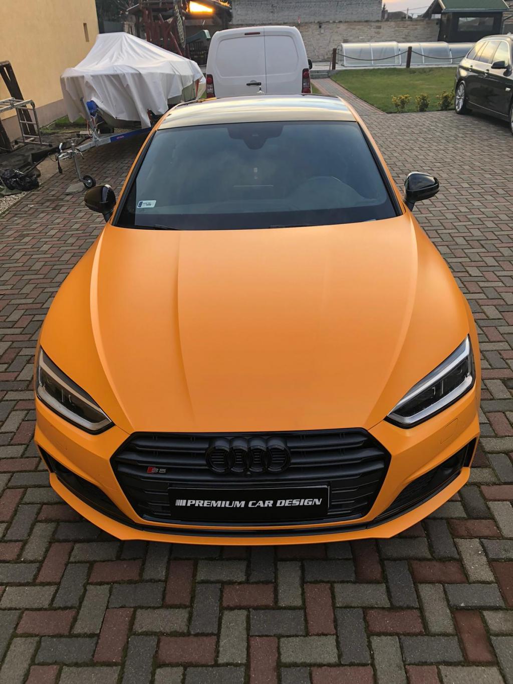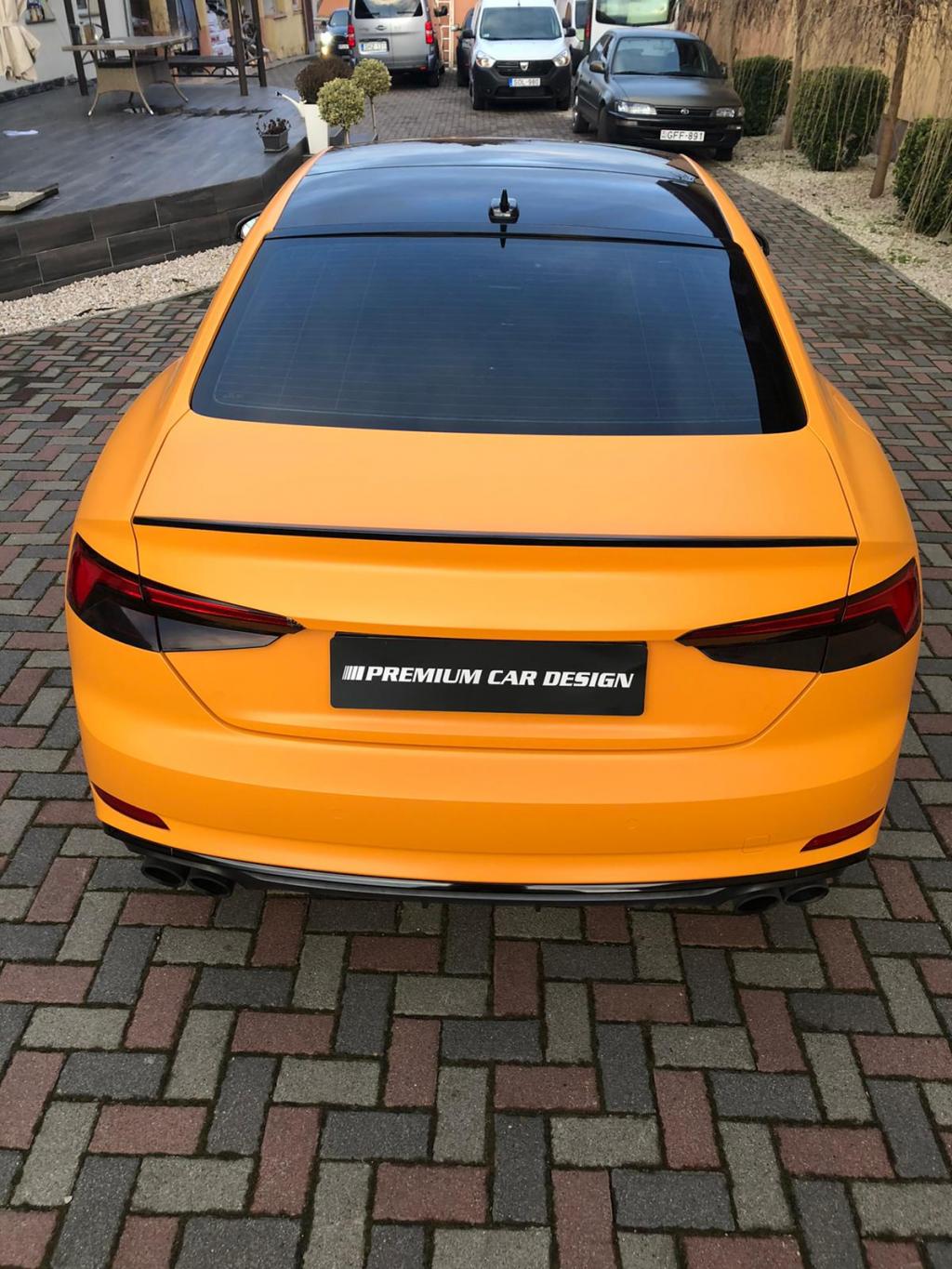 A karosszéria szatén narancssárga fóliázása
